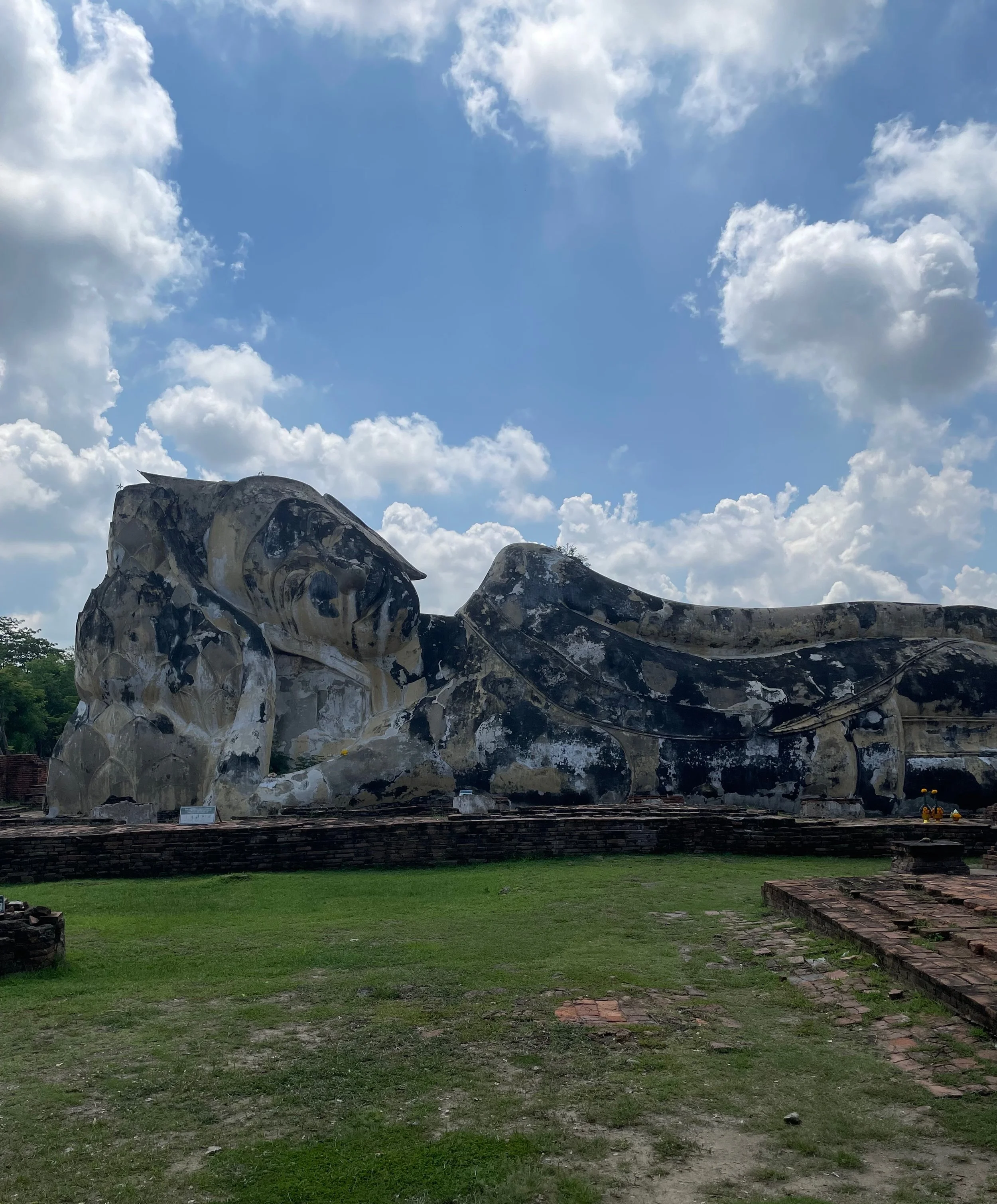 As we were exploring we came across a local in a tuk-tuk who offered to give us a tour. We haggled and accepted the offer, it was a fair price between the two of us. If you do this just be sure they’re legit, most of the tuk-tuks have a tourist police sticker on them to show the drivers are legit. He took us to a few locations. One of those was the reclining Buddha Wat Lokaya Sutharam which was super pretty and was also a great place to pic up some local art and trinkets.